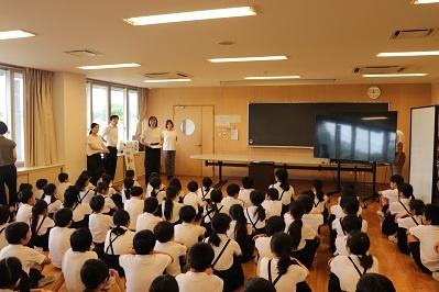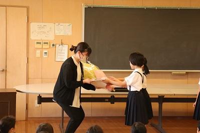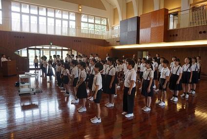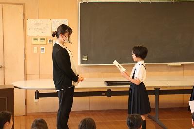1学期終業式で、7月22日より産前休暇に入る先生の離任式をおこないました。
