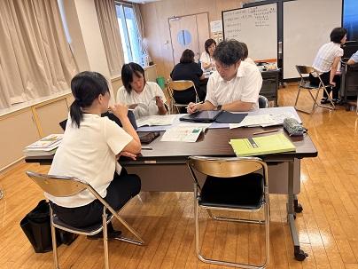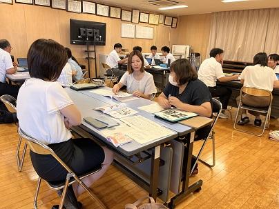 その後、2学期に向けての校内研修会をおこないました。夏休み中に何度も校内研修をおこなっています。来週もあります。今日は児童のみなさんが答えたアンケートをもとに話し合いをしました。アンケートを分析しながら、金明小のここが強み、そしてここをもっと良くしたいということを対話を通して、考えました。