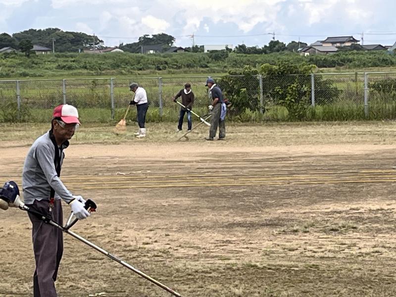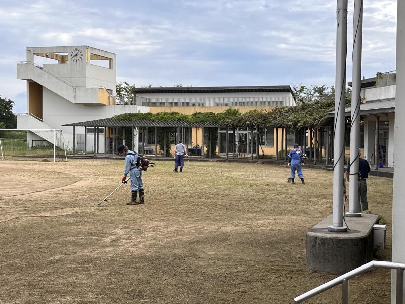 9月3日(火)の朝から、金明老人クラブの方たちに本校の運動場で除草作業をおこなっていただきました。