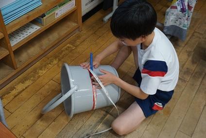 約束の時間がきたけど、はかり終えていないことも。休み時間に友達をたくさん集めて、はかる姿も見られました。