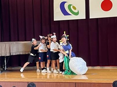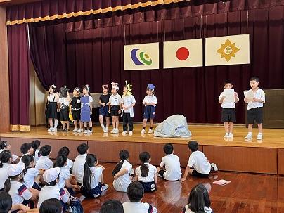 今日は1年生が「おおきなかぶ」を発表しました。授業で勉強したこと、準備したことを発表しました。