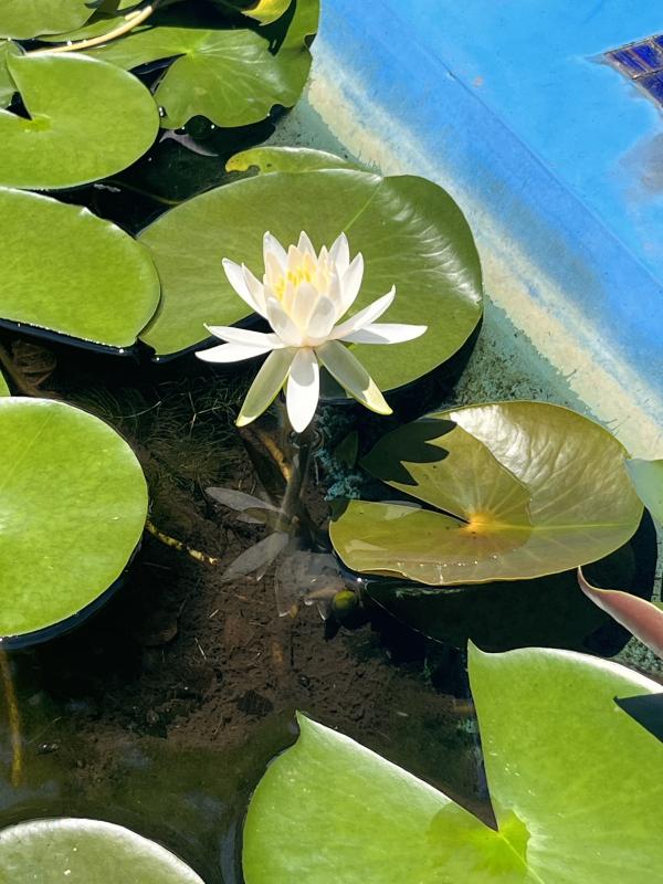 学校で咲いた白のハスの花