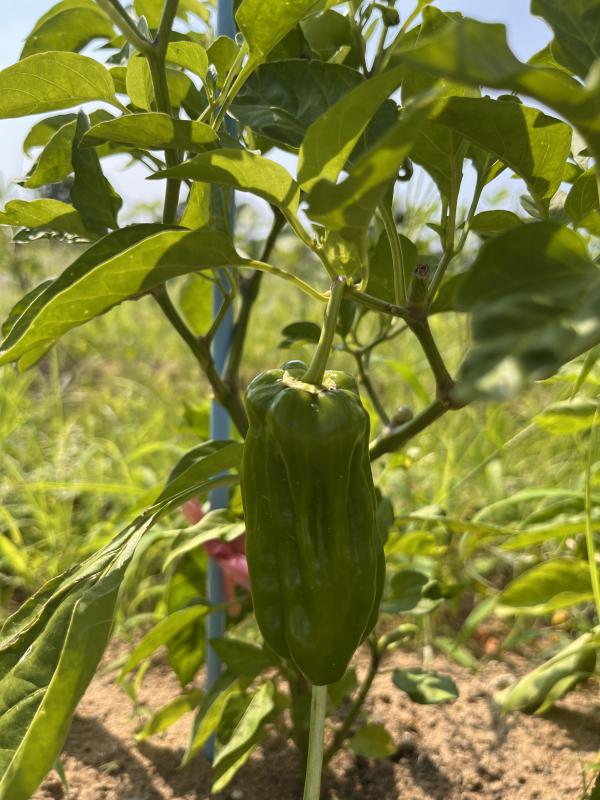 学校では、1学期に児童のみんなで植えた花が咲いています。野菜も少しずつ実になっています。