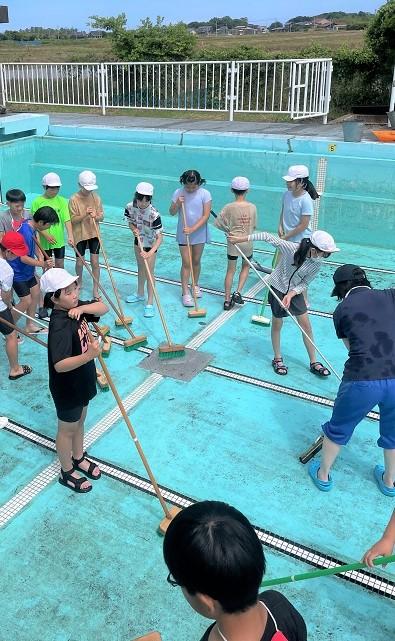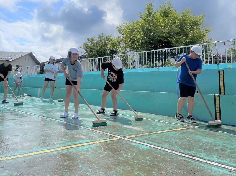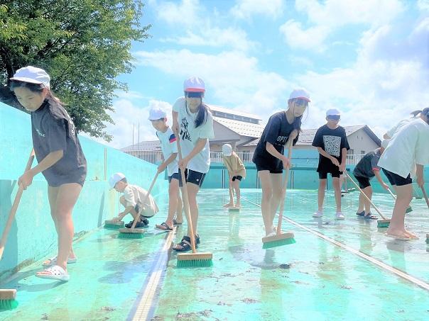5月31日(金)と6月3日(月)の2回に分けて、5,6年生でプール掃除をしました。最後まで5,6年生は床を磨き、よく頑張りました。とてもきれいになりました。これで、全校の児童が気持ちよく泳ぐことができます。ありがとう。
