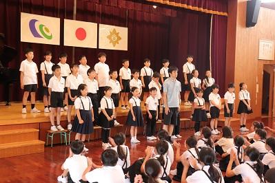 6月25日(火)は加賀市小学校音楽会です。音楽会に向けて、3,4年生が練習してきた成果を全校集会で披露しました。3,4年生のみなさんと担任の先生でつくる音楽は、楽しく、そして温かい気持ちになったり、元気をもらえたりしました。その後、1,2,5,6年生からの感想をたくさん発表してもらいました。感想の中には、「元気をもらえたよ」「優しい部分は優しく歌っていたよ」「僕も3,4年生になったら、こんな風に歌いたいな」など。感想も素晴らしかったです。