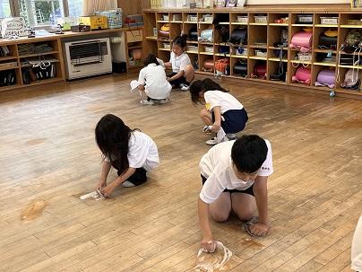 2024年6月28日 14時56分朝から雨が降り、じめじめした日になりました。今日は教室のワックス塗りを行うため、全校で汚れ落としをしました。どの児童も一生懸命に床の汚れを落とし、最後は水拭きをしてきれいにしてくれました。学校、校舎を大切にしてくれる姿を見て、うれしくなりました。