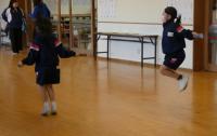 特に1,2年生は、教室前のオープンスペースでなわとびを跳んでいます。