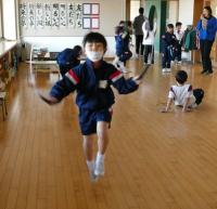 「すごくたくさん跳べるようになったね」「交差跳びもできるようになって、すごいね」の声に、うれしそうな1,2年生です。