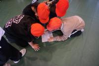 危険な場面を考えて、様々な避難訓練をおこなっています。