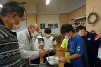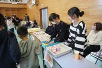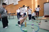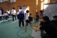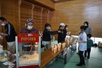 後半は、体育館に場所を移して、缶積みやチョロQチキンレース・豆つまみのゲーム、柿の葉寿司やチョコマシュマロ・ポップコーン・綿菓子・ジュースなどの飲食で、たくさん話し、食べ、ゲームで対決していました。