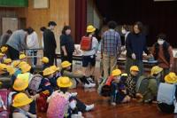 10月29日には、保護者の皆様の協力をいただき、引き渡し訓練を行いました。今回の想定は、強い地震が起こり、余震が少し収まった状況で、おうちの方に迎えに来てもらうことにしました。