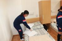 ベッドメーキングをします。