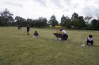 ディスクゴルフの準備です。みんなで取り組みました。