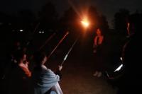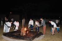 真っ暗になった夕方、芦原青年の家の外に出て、キャンプファイヤーをしました。