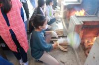 真っ暗な中に火が見えると明るくなり、炎が表れると子どもたちから「お~」という歓声がおこりました。
