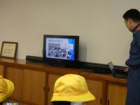 初めに、消防士さんから消防署のお仕事や出動の回数などを教えてもらいました。