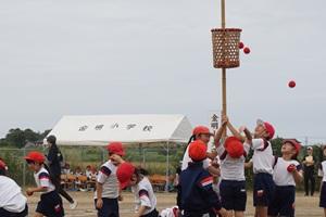 運動会の1,2年生団競「玉入れ」です。