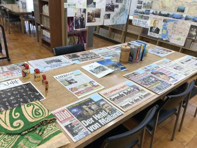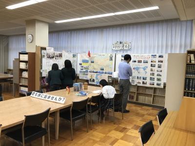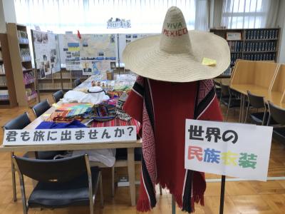 11月8~22日、松登繁隆先生がこれまで旅した日本や世界96カ国を紹介する特別展示『俺の旅』を催しました。去年の文化祭での展示をゆっくり見ることができなかった生徒からのリクエストがきっかけとなりました。国内外の旅の足跡を写真や地図などでまとめた掲示のほか、カラフルな民族衣装やさまざまな言語の文字が印象的な各国の新聞など、日を追って展示物が増え、多くの生徒が実物に触れながら世界を身近に感じることができる貴重な機会となりました。