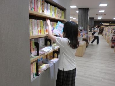 6月13日(木)イオンモール新小松店 KaBoSを訪問し、本校図書委員8名が本の買い出し研修を行いました。 担当の書店員から説明を受けた後、検索機やお店の人に尋ねながら本を選んでいきました。今話題の本やぜひみんなに読んでほしい本、装丁のきれいな本やあまり図書館にないジャンルの本など、それぞれ考えながら選定していくことができました。