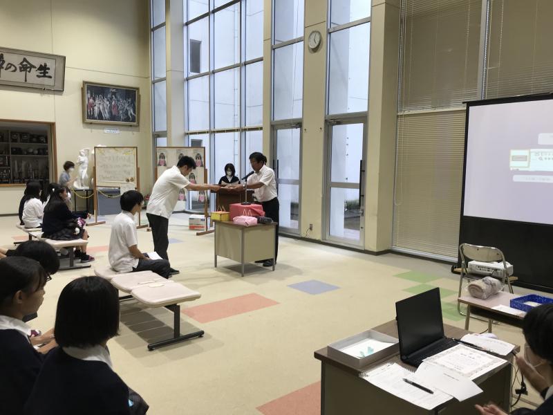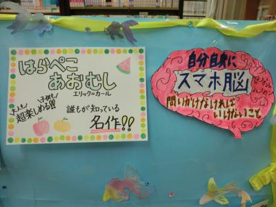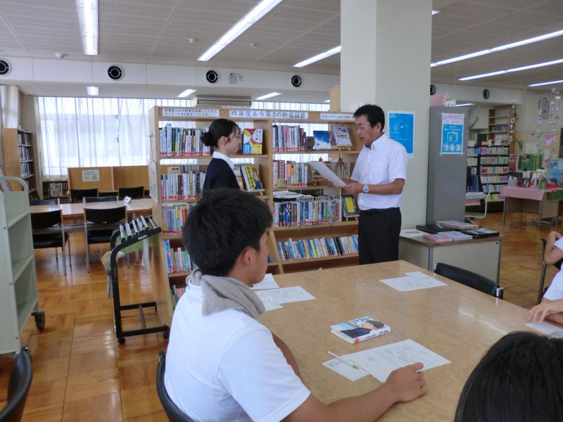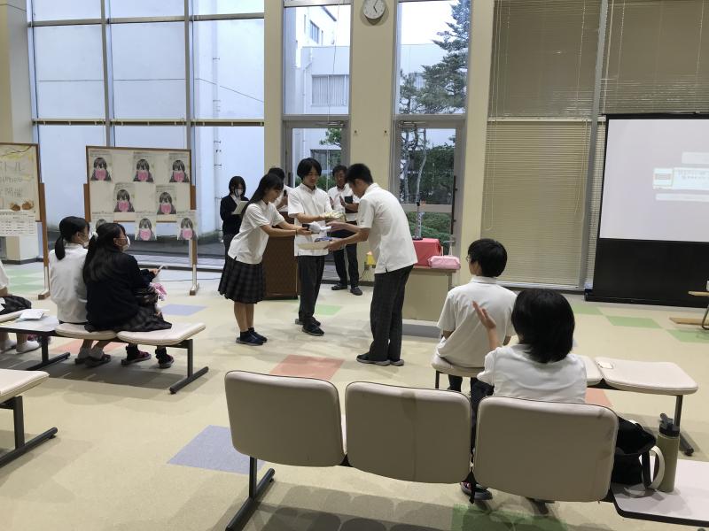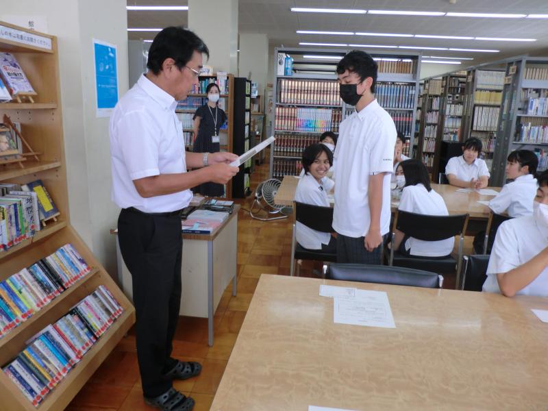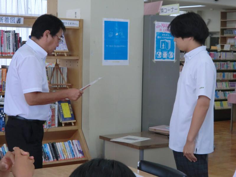 9月11日の昼休みに図書室で、文化祭で図書委員会が企画し開催された「POPコンテスト」の結果報告と表彰式を行いました。