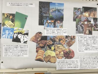 本校にアルゼンチンから留学生として来ているカルメンさんが、母国を紹介するポスターを作成してくれました。アルゼンチンは日本ではあまりなじみのない国かもしれませんが、地理や歴史、文化などジャンルごとに、写真も多用してわかりやすいポスターに仕上がりました。