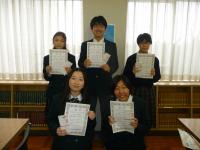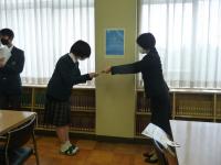 1月27日(水)昼休み、スタンプラリー抽選会後、ベストリーダー賞(多読賞)の5名に賞状と賞品(図書カード)を贈呈しました。今年度も昨年に引き続き、3年生の一人がダブル授賞!校長先生より授与され、お話いただき、記念撮影を行いました。また、会の運営を図書委員ほか有志で行い、温かな雰囲気で授賞者の栄誉を称えました。