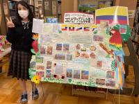 マリアナさんは12月に来日したばかりですが、全て日本語で書き、得意な絵や工作を活かし、丁寧で見事なポスターとなっています。図書館前に展示していますので、ぜひ、皆さん、ご覧になってください。