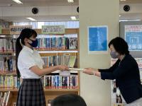 9月13日昼休みに行われた図書委員会にて、文化祭時に開催されたPOPコンテストの結果発表及び表彰式を行いました。全作品19点の中から上位入賞者5名に校長先生より表彰状と粗品が贈られました。