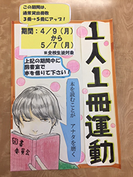 4/9(月)~5/7(月)の期間、「1人1冊運動」に取り組んでいます。