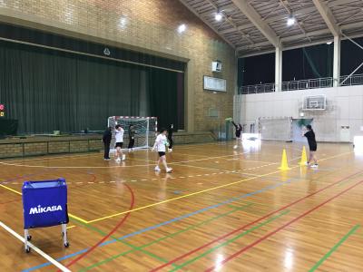 体育館では、全国大会から帰ってきたハンドボール部がシュート練習。