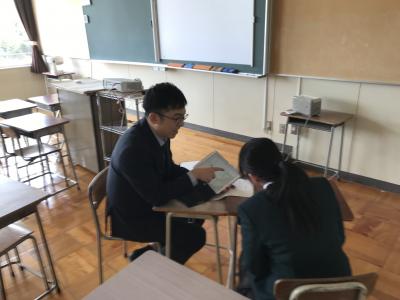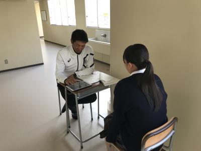 生徒一人一人が、担任の先生と対面で話をします。
