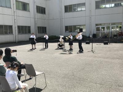 音楽室では、新しい先生を迎えた吹奏楽部が自己紹介と親睦会。
