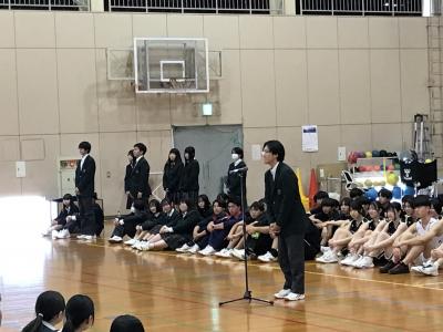 野球部の見事な応援と、生徒会の熱い激励で、壮行式が締めくくられました。