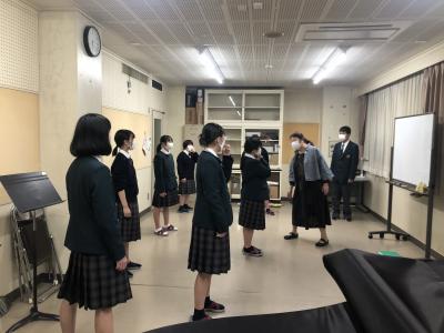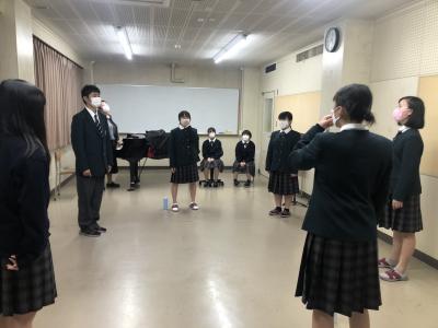 合唱部には現在13名の部員が所属しています。コロナウイルスの影響で人前で歌える機会がめっきり減ってしまい寂しい限りですが、部員たちは皆さんの前で演奏できることを心待ちにしながら毎日練習を頑張っています!