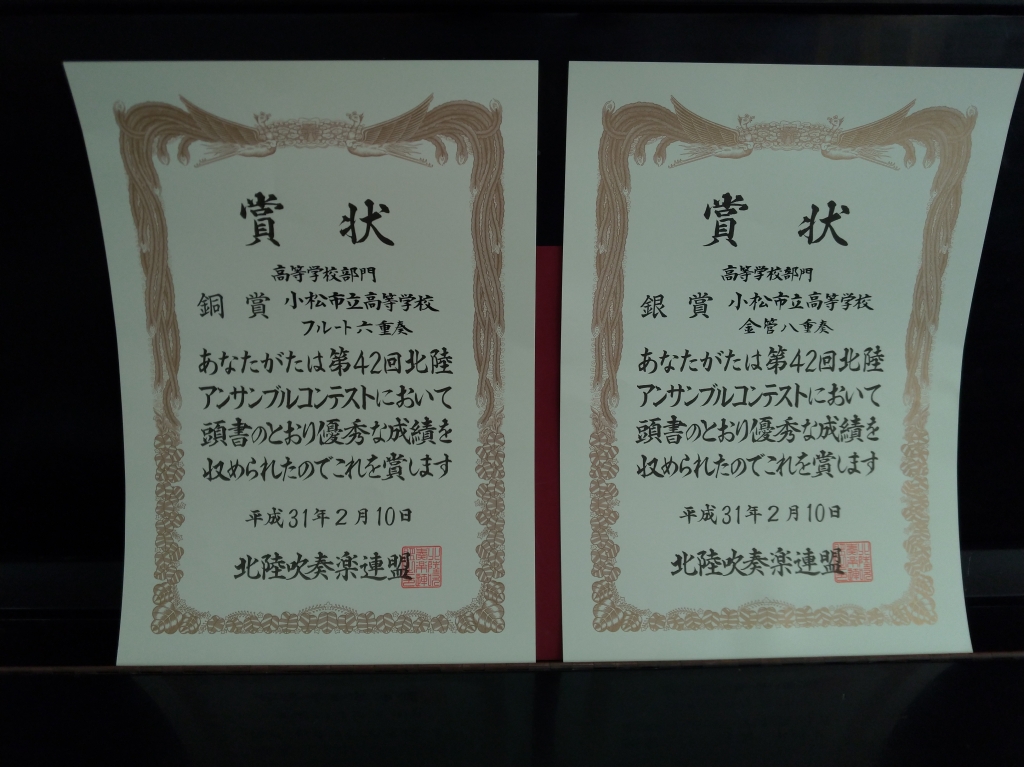 2月10日に第42回北陸アンサンブルコンテストが行われました!残念ながら市立は金管8重奏が銀賞、フルート6重奏が銅賞という結果でした♪
