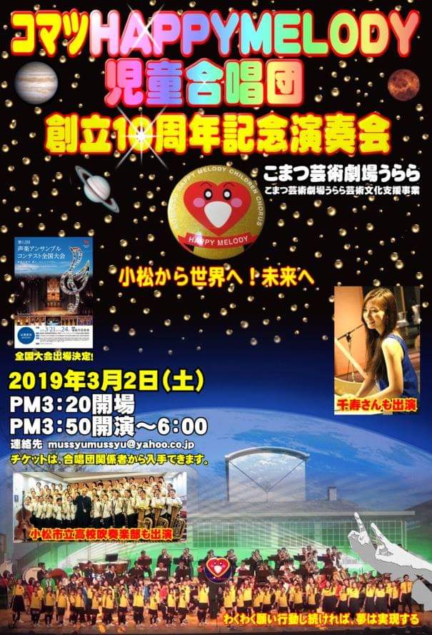 コマツhappymelody児童合唱団創立10周年記念演奏会にゲスト出演致します♪