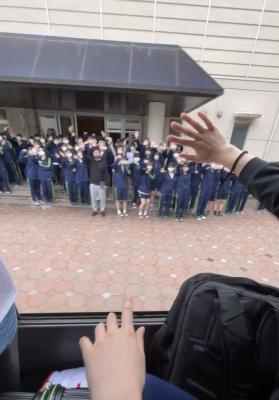今日の朝、選抜大会に向けて出発しました。学校のみなさんがお見送りをしてくれました!ありがとうございました!みなさんの応援にこたえられるよう頑張ります!