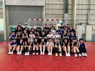 特別国体に向け、9月16日、17日の2日間、三重県の日本リーグ所属チーム、三重バイオレットアイリスにお邪魔し、練習をしてきました。日本リーグでプレーしている選手はスピード、パワー、体格と自分たちよりも数段上でしたが、何とか通用するプレーもでき、自信をつけて終えることができました。OGで三重バイオレットアイリスでコーチを務める石立さんにも指導していただき、チーム、個人としてもレベルアップできた2日間でした。