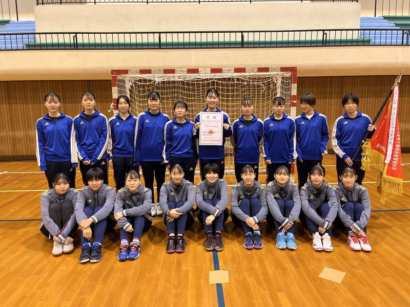 本校は2回戦からの出場で、2回戦の山本学園戦では、高校からハンドボールを始めた2年生の岡田(山代中)、桝井(松東中)も含め、チーム全員が得点を挙げ41-13で快勝しました。