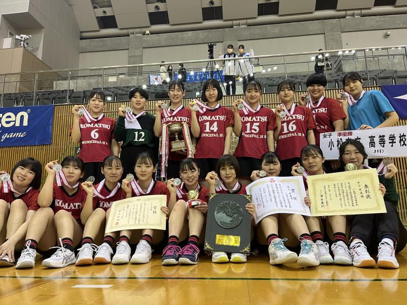 準々決勝の白梅学園戦は相手のチームワークのあるオフェンスに対応するために、大会前から準備していたディフェンスが効き、1年生の谷口(寺井中)、向田(寺井中)が頑張り、相手の攻撃をうまく抑えることができ22-17で勝利しました。