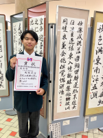 そして展示の結果、創作賞(創作部門は全体から1名のみ!)、臨書部門の優良賞、佳作と3名が選ばれました。もちろん選ばれなかった生徒の作品も遜色のないものであったのですが…全員は難しいものです。