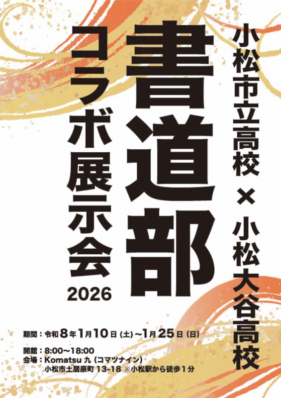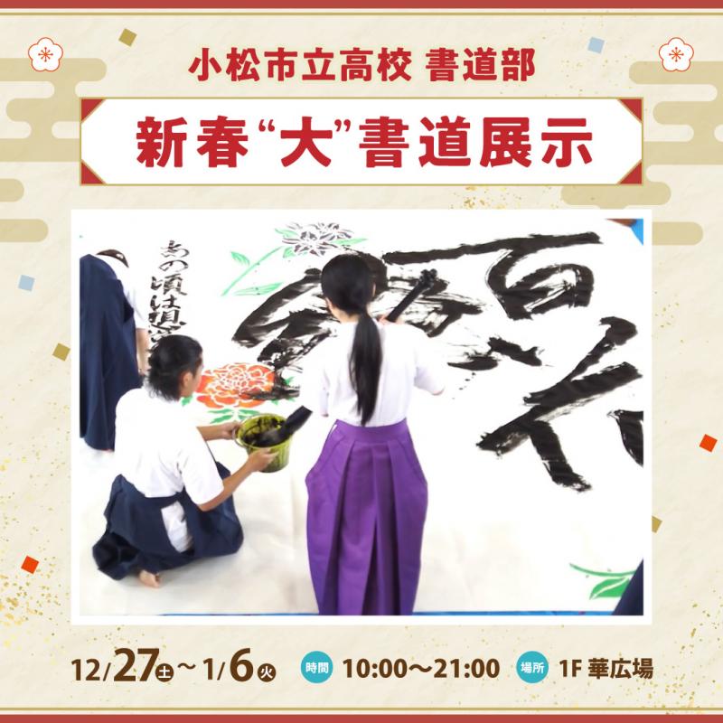 1月10日(土)~1月25日(日)にかけて小松駅そばにある「コマツ九」において大谷高校様と合同の作品展をおこないます。昨年書道展に出品した作品に加え、新たな大きめの作品にも取り組みました。大谷高校の皆様の作品も交えてになり、非常に楽しみです。駅を利用される際に、ぜひ立ち寄っていただけると嬉しいです。