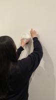 額を壁から外して「パテ埋め」をします。専用の塗料を使って跡を目立たないようにしていきます。