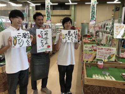 7月20(木)、JA小松市JAあぐりと小松警察署とのコラボ作品披露会があり、部を代表して部長の3年小林くんと副部長の3年清水くんが参加しました。交通安全のダジャレ(野菜とかけられています)をもとに、部員1人1作品を仕上げました。