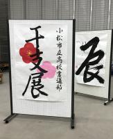 今年度も干支展を実施しています。部員たちが今年の干支「辰」をいろいろな字体で書きました。今年は見ていただける方々により迫力を感じてもらえるようサイズを大判サイズに統一し、6作品仕上げました。