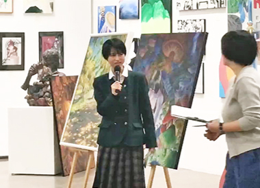 午後1時からは表彰式、受賞者による作品説明会が行われ、本校からは優秀賞を頂いた3年坂倉 梨紗さんが発表しました。