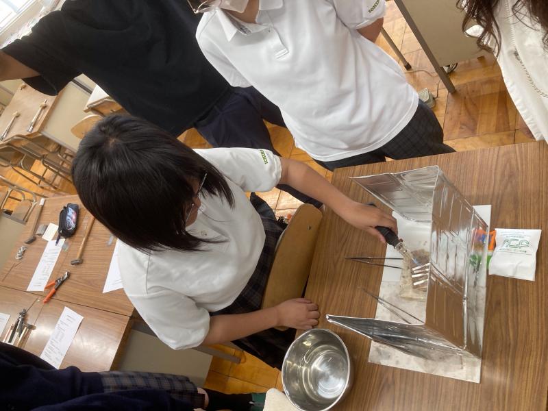 8月8日(木)奈良芸術短期大学のアートジュエリーメディア講師を招き、アクセサリーづくりの実技体験をしました。「純銀線と天然石ウを使ったペンダント」と「天然石の揺れるシルバーリング」の2つを製作しました。焼きなまし等の金属加工や装飾作業にみんな集中して取り組んでいました。指輪をきれいな円形に整えようと一生懸命に木槌でたたく姿が印象的でした。最後は完成した作品を嬉しそうに身につけていました。