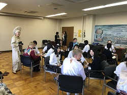 小松市の友好交流都市ロシア・アンガルスク市の訪問団10名が来校し、英語部員と交流しました。