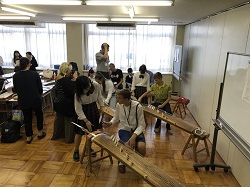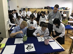 邦楽、華道、茶道、書道の各部を体験してもらい、それぞれ案内しました。