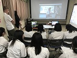 5月28日(月)放課後、英語部の生徒がドイツのカイザースラウテルン市の生徒とスカイプでオンラインミーティングを行いました。お互いの自己紹介、街の紹介、学校紹介をプレゼンテーション形式で行いました。そのあと、自由会話を楽しみました。最初は緊張しましたが、次第にうちとけて、笑顔や笑い声も目立つようになりました。英語でコミュニケーションできたことで、参加した生徒は楽しみながら自信をつけていました。
